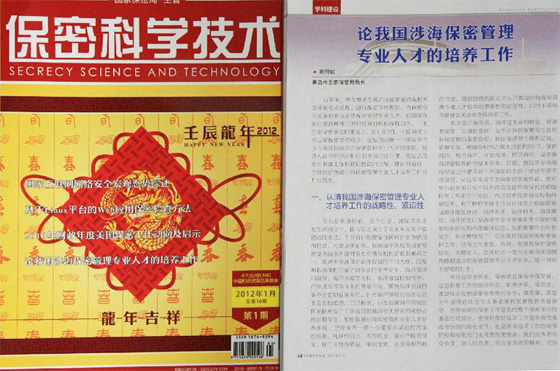 本站讯 近日,国家《保密科学技术》杂志2012年第1期刊发了青