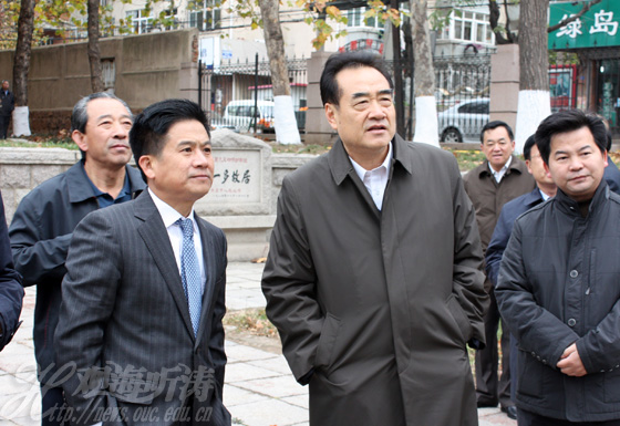 商务部原副部长廖晓淇一行参观中国海洋大学校园