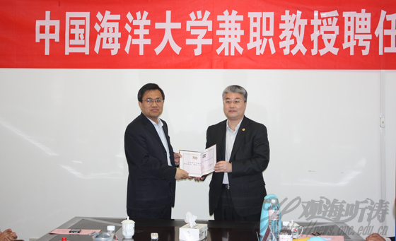 中国海洋大学党委书记于志刚为宋军继(左)颁发聘书 本站讯 201