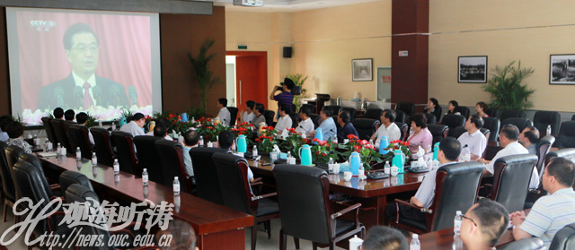 中国海洋大学师生认真收看庆祝中国共产党成立90周年大会实况