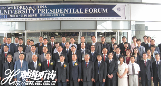 本站讯 2011年6月12日-14日,第三届中韩大学校长论坛在韩国岭南大学举行,中国海洋大学副校