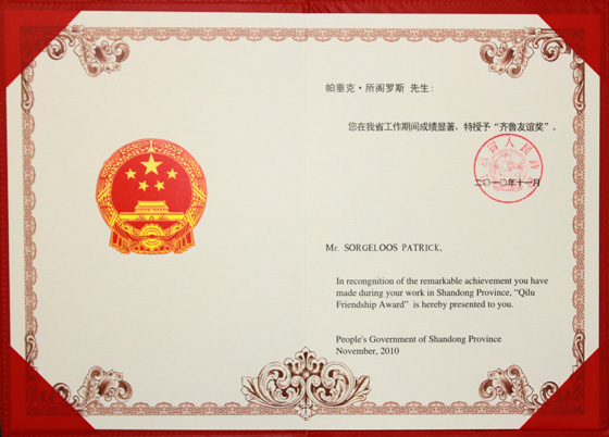 海大外国专家帕垂克·所阁罗斯教授喜获2010年度“齐鲁友谊奖”