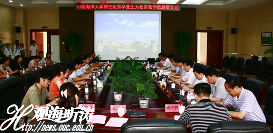本站讯 中国海洋大学聘任优秀毕业生为教育教学信息员大会于2010年6月23日上午在崂山校区图