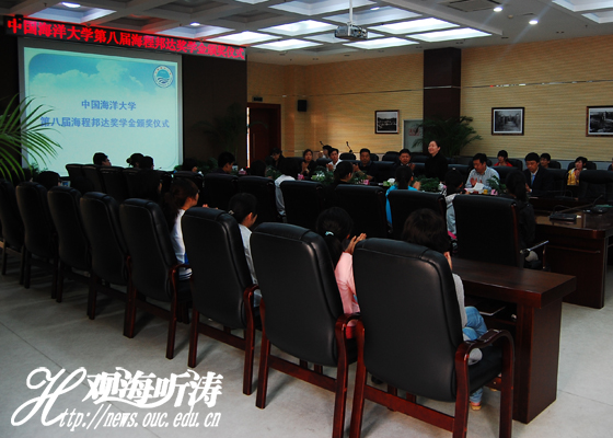 颁奖仪式现场 本站讯 2010年6月4日下午,第八届海程邦达奖学金颁奖仪式在中国海洋大学崂