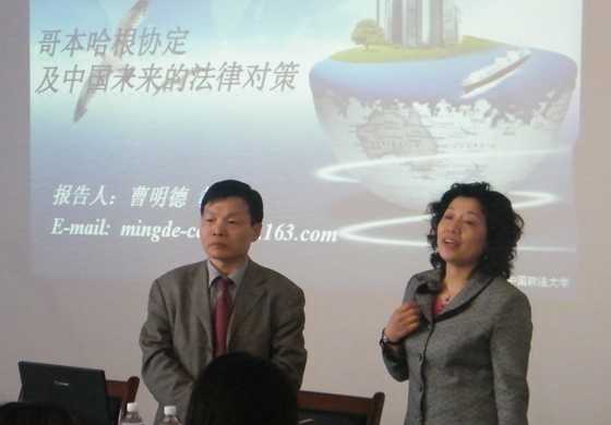 曹明德教授(左)来海大作报告 本站讯 2010年5月19日下午,中