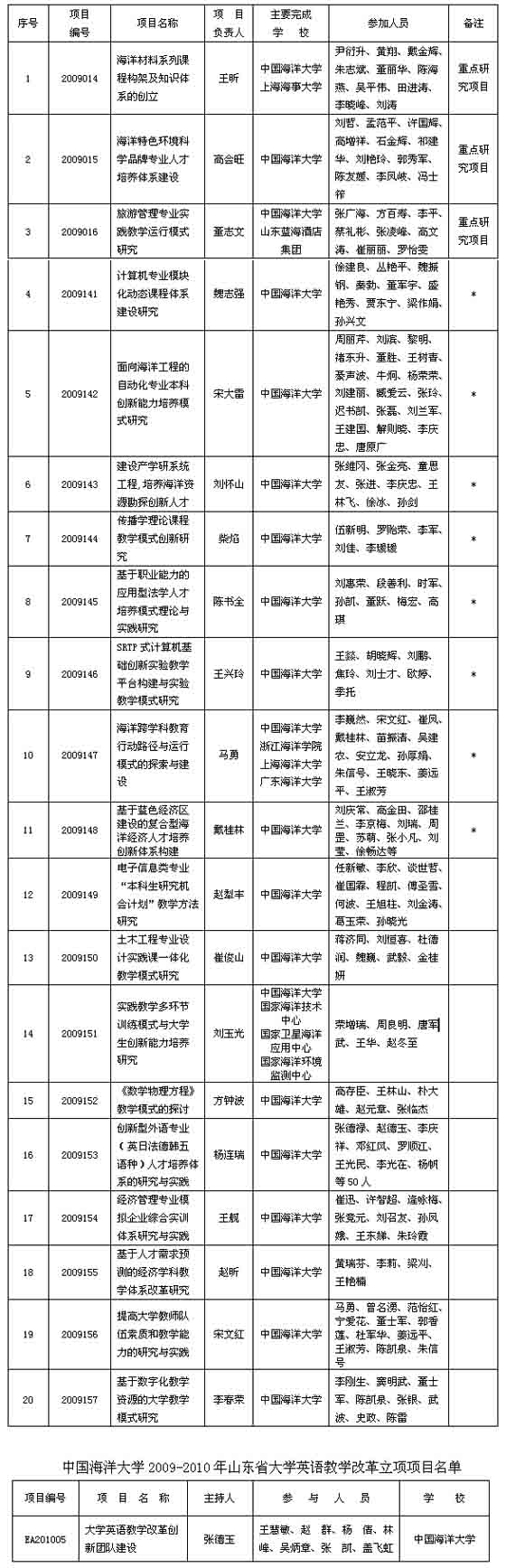 中国海洋大学2009年度20个省级本科教学改革研究项目获批立项