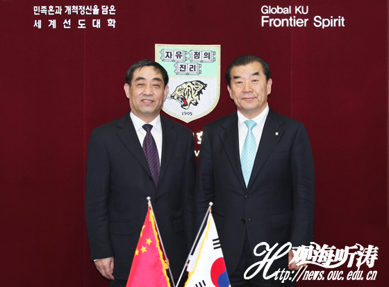 中国海洋大学校长吴德星(左)与韩国高丽大学校长李基秀(右)合影留念