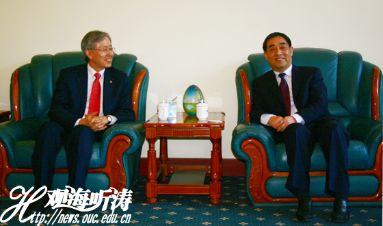 韩国国立全南大学校长金润受一行访问中国海洋大学