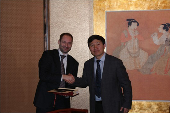 李华军副校长(右)向Markus Reubi先生赠送纪念品 本站