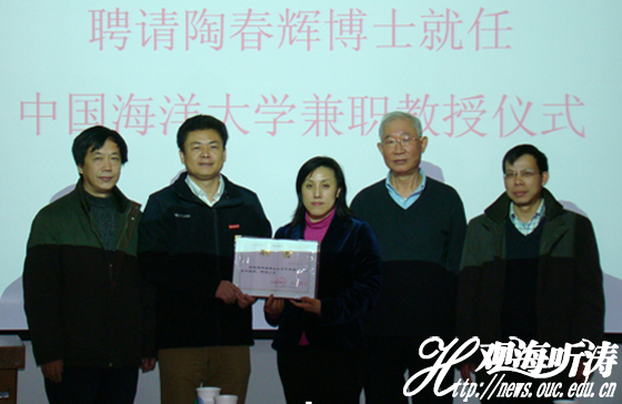 闫菊副校长(右三)为陶春辉教授(左二)颁发聘书 本站讯 2010