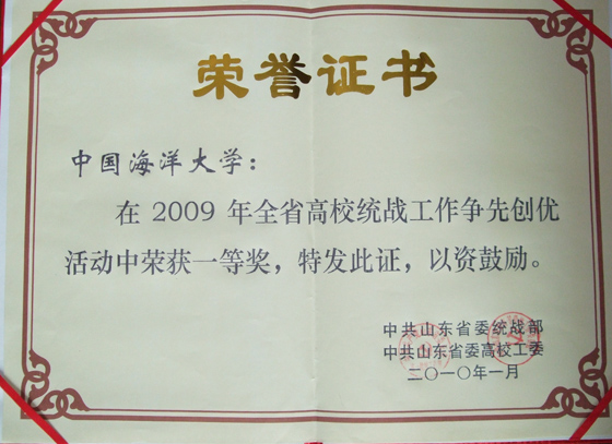 海大获2009年山东高校统战工作争先创优活动一等奖