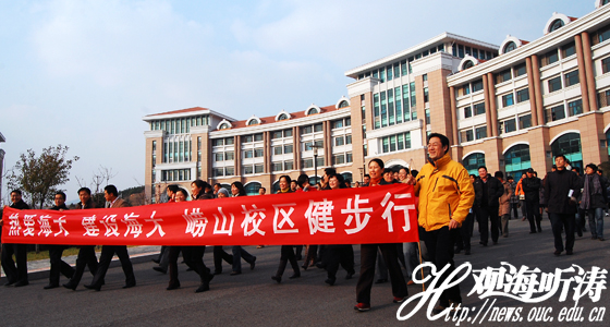 每天锻炼一小时,健康工作五十年,幸福快乐一辈子本站讯 走出实验室,离开办公桌,三百余名海大教工健步行