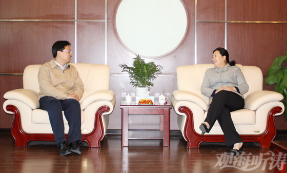中国海洋大学党委副书记张静(右)与团市委书记陈飞(左)会谈 本站讯 2009年11月18日上午,青
