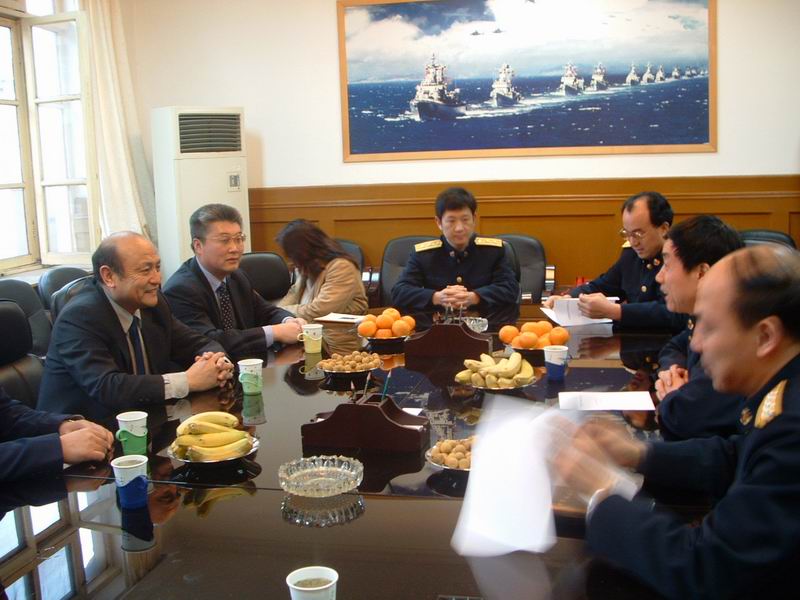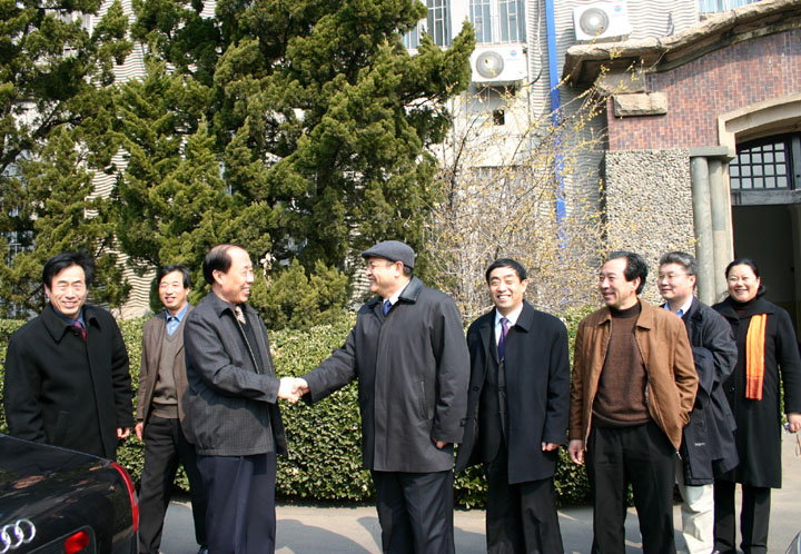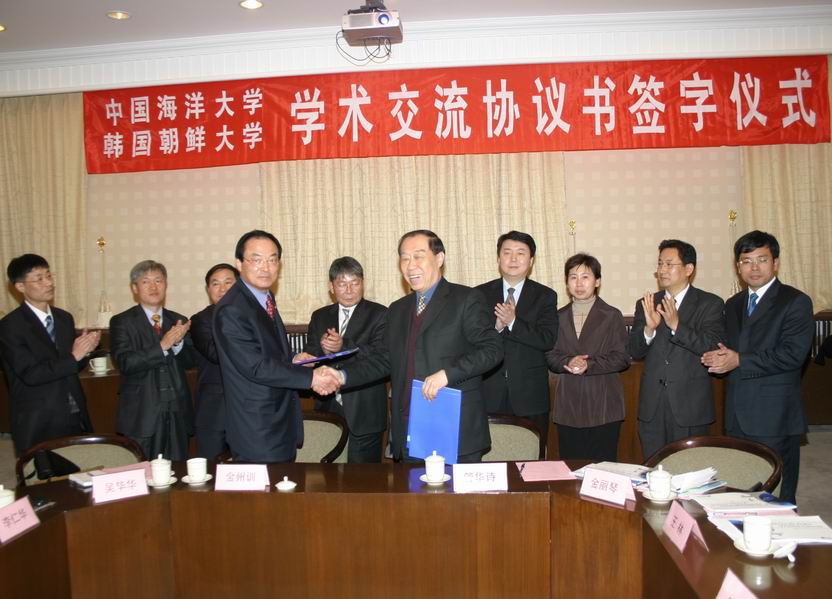 本站讯 2005年2月1日下午,管华诗校长在逸夫科技馆八角厅与来访的韩国朝鲜大学金州训校长一行亲切会