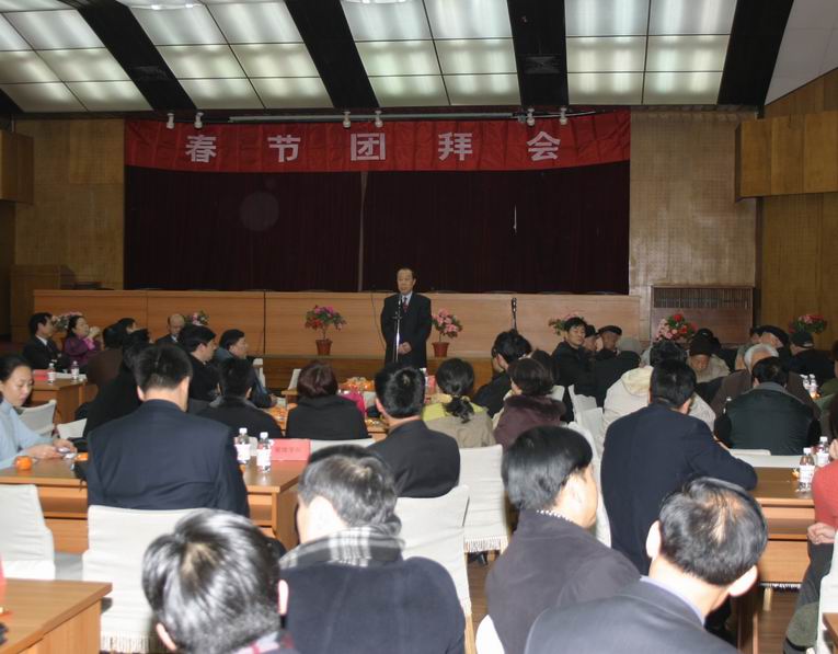 本站讯 2005年2月9日,农历大年初一的上午9:30,我校春节团拜会在逸夫科技馆多功能