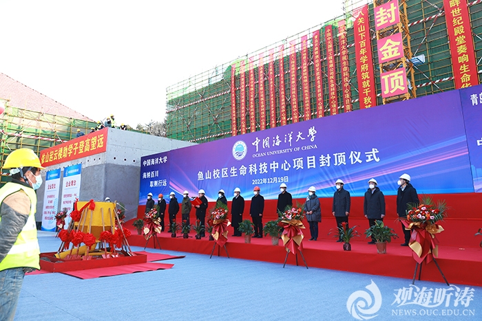 本站讯12月19日上午,中国海洋大学鱼山校区生命科技中心项目封顶仪式在项目现场举行。学校校长于志刚、党委常务副书记张静出席仪式。于志刚现场宣布生命科技中心项目主体封顶。张静代表学校致辞,她向日夜奋斗在施工现场的全体建设者致以敬意和问候,向为项目做出贡献的参建人员表示感谢。她指出,生命科技中心项目选址在寸土寸金的鱼山校园,是学校“十三五”、“十四五”基本建设规划重点项目之一,是改善鱼山校区办学条件、生命科学与技术学科群冲击世界一流的重要支撑和保障,也是学校提升服务国家海洋强国战略、山东海洋强省建设、青岛建设全球海洋中心城市能力的重大载体。自项目开工建设以来,各参建单位精诚合作、周密组织,克服了建筑功能复杂、地质条件复杂、周边环境复杂、施工空间急促、施工组织复杂等重重挑战,克服了新冠肺炎疫情和恶劣天气的带来的冲击和不利影响,使得生命科技中心项目顺利完成主体结构封顶。她强调,鱼山校区是一座百年校园,2024年学校将迎来百年校庆。我们正在建设的生命科技中心大楼,不仅是在校园里新建几座楼,更是在书写一篇新的百年华章。她希望项目全体参建人员把主体结构封顶当作新的起点,继续发扬工匠精神,精雕细琢,精