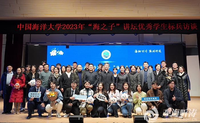 • 本站讯12月19日,中国海洋大学2023年“海之子”讲坛——优秀学生标兵访谈在大学生活动中心举行。副校长范其伟出席活动。此次访谈由“浩海求索是”“笃行出真知”“躬身存壮志”三个篇章组成,10位优秀学生标兵结合自身在专业学习、学术科研、社会实践、创新创业、志愿服务等方面的成长与收获进行精彩分享,展现出海大学子积极进取、奋发向上的精神风貌,彰显了青春的蓬勃力量。活动中,2020级环境工程专业丁肖丹、2020级海洋资源与环境专业王丹阳、2020级微电子科学与工程专业关清围绕自身丰富的创新创业与科研竞赛经历,讲述了在漫漫科研路中上下求索、横向拓展的故事,鼓励同学们沉淀自我、打好基础、积蓄力量、不断前进。2020级生物科学(强基计划)专业王佳雨、2020级海洋科学(拔尖)专业李子龙、2020级国际经济与贸易专业陈建均、2020级食品科学与工程专业戚文凯就“如何兼顾做好学术科研、社会实践和志愿服务”分享了宝贵的经验,希望同学们能在学习中增长才干,在实践中提升本领。2020级数学与应用数学(中外合作办学)专业丁哲楠、2020级政治学与行政学专业刘宇桐、2020级工程管理专业戚郁昌展示了自身丰富的学生