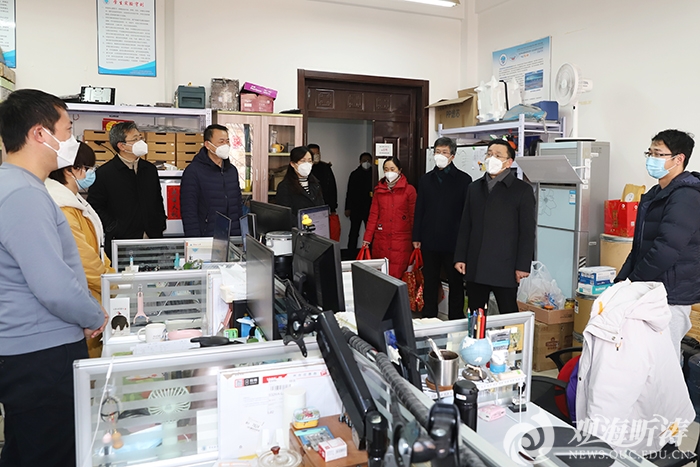 • 本站讯1月5日上午,学校党委书记田辉、校长于志刚、党委常务副书记张静、副校长范其伟、副校长魏志强、校长助理于利带队,在崂山校区、鱼山校区、浮山校区、西海岸校区看望留校学生,慰问一线工作人员,并进行校园安全检查。学校领导来到学院实验室、学生公寓、校医院、校园110值班室、消防控制室、餐厅、配电室、换热站、工程建设现场等地,了解留校学生生活学习情况,向坚守在一线的教职员工表示慰问和感谢,并详细了解各单位寒假期间安全工作安排和安全措施落实情况。校领导希望大家做好个人防护,加强体育锻炼,保持身体健康,并祝大家新年快乐,全家幸福。学校领导强调,要周密组织,精心安排,切实做好假期留校师生的服务保障工作。要强化责任意识,坚持底线思维,加强值班值守,落实防范措施,坚决守牢校园安全防线,营造和谐安全的校园环境,保障大家度过一个平安祥和的春节。党委办公室、校长办公室、学生工作处、保卫处、国有资产与实验室管理处、后勤保障处和工会等单位负责人参加活动。通讯员:蒋仲青 图:刘邦华 赵海磊 刘莅 赵奚赟田辉书记(前排右)和范其伟(后排右四)在崂山校区学生公寓检查工作并慰问工作人员于志刚校长(左一)在鱼山校区换热站