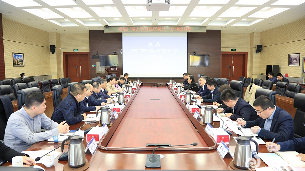 本站讯4月2日,广西大学校长肖建庄一行到校考察调研。学校校长张峻峰陪同调研并座谈。张峻峰对肖建庄一行表示欢迎,并介绍了学校近期事业发展情况。他指出,习近平总书记高度重视海洋强国建设,对中国海洋大学深切关怀、寄予厚望、委以重任。学校正在深入贯彻落实习近平总书记重要讲话和重要回信精神,深化落实“5135”发展战略,聚力打造海洋经济高质量发展的坚实支撑、先导力量、战略引擎。他表示,广西大学学科特色鲜明、发展势头强劲。两校均处于加快发展的历史节点,希望双方以此次交流为契机,面向国家重大战略需求,充分发挥各自优势,在学科建设、原创性引领性科技攻关、面向东盟的国际合作等方面深化务实合作,共同为建设教育强国、海洋强国作出新的更大贡献。肖建庄代表广西大学对中国海洋大学长期以来的支持表示感谢,并介绍了学校办学情况。他表示,中国海洋大学是我国海洋高等教育的旗帜,办学成就令人钦佩。广西大学正处在推进高质量发展、向海图强的关键时期,期待两校围绕服务海洋强国战略,在海洋生态保护、海洋碳汇与环境治理、中国—东盟海洋合作等领域开展深入合作,共同谱写协同发展的新篇章。座谈会由中国海洋大学发展规划处处长刘海波主持。双方