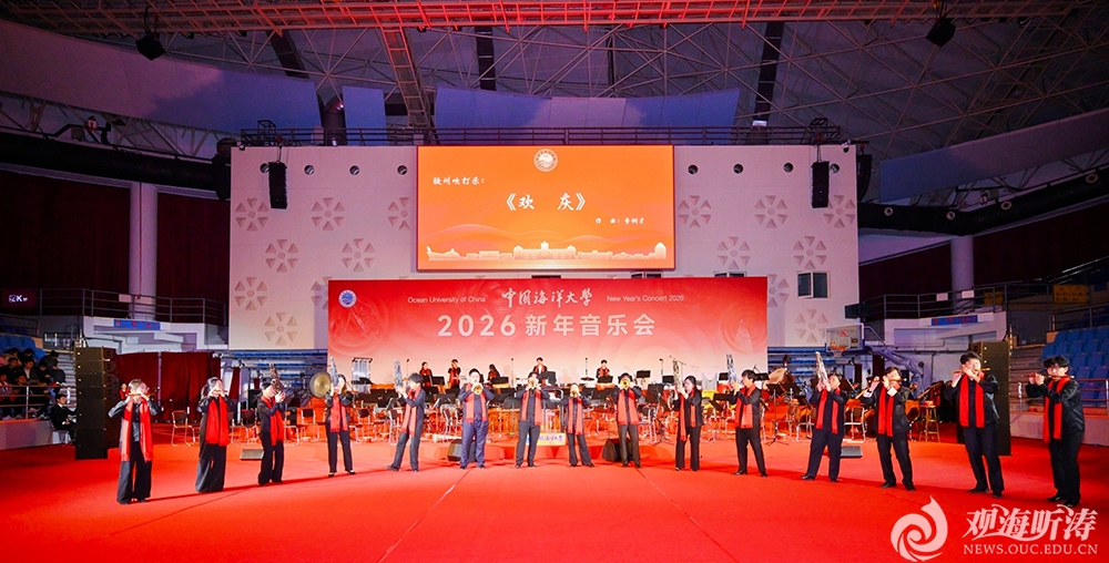 本站讯12月26日晚,中国海洋大学2026年新年音乐会在崂山校区体育馆隆重举行。学校党委书记李明,党委副书记卢光志,党委常委、副校长刘勇,党委副书记、纪委书记俞黎阳出席音乐会。 音乐会在情境叙事合唱《蓝色畅想》中拉开序幕,该作品以旋律为翼,既深情传扬“勇立潮头、谋海济国”的海大精神,更奏响新时代向海图强的奋进之歌。 整场音乐会融合民族管弦、交响乐、声乐、合唱等多种艺术形式,胶州吹打乐《欢庆》以欢快热烈的节奏点燃了现场气氛,民族管弦乐《童年的回忆》以细腻的旋律唤起观众对美好童年的集体记忆;《丝绸之路》以音乐编织文明对话,展现海大开放包容的精神风貌;原创作品《山那边是海——乐兴海大绿春情》首演成功,以艺术形式讲述学校定点帮扶云南绿春县的动人故事,彰显海大人“翻越群山向海行”的坚定追求;《永远的山丹丹》以磅礴的民族管弦乐语言,深情回望黄土高原的革命岁月与精神传承。 男女声二重唱《蓝色梦想》深情演绎海大人“浩海求索、谋海济国”的使命担当;管弦乐序曲《红旗颂》气势恢宏,传递炽热爱国情怀;二胡齐奏《赛马》《战马奔腾》以奔腾节奏寓意新年奋进之姿;交响合唱《黄河大合唱》引领观众重温民族精神史诗;