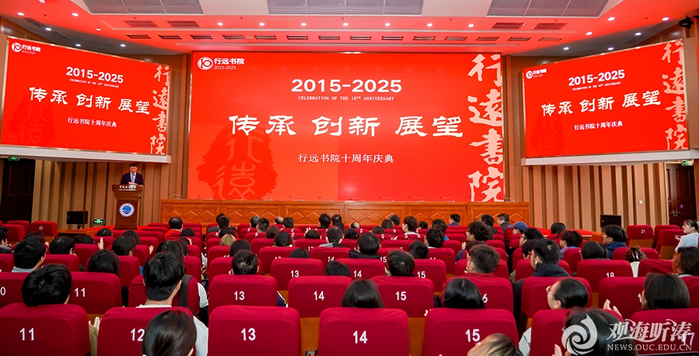 大会现场本站讯以十年积淀为基,以百年树人为志。11月29日,中国海洋大学行远书院十周年庆典大会在崂山校区海洋科技楼国际报告厅举行。校长张峻峰出席大会。学校相关职能部门负责人、各学院代表、书院制校际交流学校代表、行远书院师生、毕业生院友齐聚一堂,共度院庆。张峻峰校长讲话 张峻峰代表学校对与会嘉宾表示欢迎,对支持行远书院发展的各界朋友表示感谢,对行远书院全体师生员工和广大院友致以祝福。他指出,学校认真贯彻落实习近平总书记重要回信精神,有组织地推进人才培养模式改革,系统提高拔尖创新人才自主培养能力。行远书院肩负着开展通识教育、助力学生养成健全人格的重要使命。自2015年成立以来,行远书院坚持“通识为体,专业为用”,不断推动通识教育与专业教育相互融合,已成为学校复合型人才培养的重要基地,育人成效显著。 张峻峰希望行远书院以建院十周年为契机,系统总结十年来的成功经验,凝练提升育人模式,打造通识教育品牌;扩大培养覆盖面,汇聚通识教育名师,推动优质教育资源共建共享,形成更广泛的示范效应;构建自主知识体系,系统转化系列精品教材与核心课程。他表示,学校将一如既往支持行远书院的建设发展,提供坚实保障,
