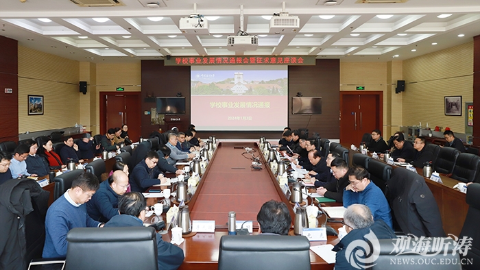 • 本站讯1月3日,中国海洋大学在崂山校区召开统战人士座谈会,党委书记田辉通报2023年学校事业发展情况并听取统战人士的意见建议。党委副书记卢光志主持会议,副校长魏志强出席会议。田辉指出,在过去的一年里,学校以习近平新时代中国特色社会主义思想为指导,全面贯彻落实党的二十大精神,深入贯彻落实学校第十一次党代会战略部署,以扎实开展主题教育为重要契机,攻坚克难、破题开局,在广大师生员工的共同努力下,奋力推进实施新时代党建领航工程、新时代奋进海大工程、新时代创新海大工程、新时代卓越海大工程、新时代幸福海大工程,着力打造人才培养的海大模式、科学研究的海大学派、服务社会的海大经验、文化传承的海大精神、合作交流的海大格局,各项事业发展取得了出色成绩。  田辉强调,学校事业的快速发展,是全体师生员工团结奋进、攻坚克难的结果,也是学校统战人士与党同心同行、共图发展的结果。他对学校统战人士的的辛勤付出表示衷心感谢,对2023年学校统战工作取得的成绩表示肯定。希望学校统战人士进一步增强政治意识,不断增进对中国共产党领导和中国特色社会主义的政治认同、思想认同、理论认同和情感认同,深刻领悟“两个确立”的决定性意义,