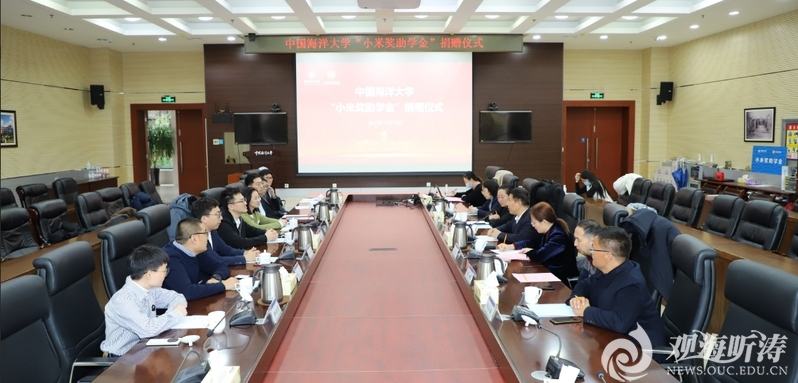 •   12月14日,中国海洋大学“小米奖助学金”捐赠仪式在崂山校区举行。学校副校长、教育基金会理事长王剑敏,小米集团党委副书记、人力资源部总经理王栋出席仪式。王剑敏对王栋一行的到来表示热烈欢迎,对小米集团大力支持学校教育事业发展表达了衷心感谢。他表示“小米奖助学金”充分体现了小米公益基金会高度的社会责任感,这一善举既有对优秀学生的激励,也有对家庭经济困难学生的资助,同时还将为学生成长成才提供发展机会。他指出“小米奖助学金”的设立,将对学校育人体系完善和质量提升发挥重要支持作用。期待双方以捐赠仪式为起点,在更广泛的领域开展深度合作,为海洋强国建设作出新的更大贡献。王栋表示,小米集团创立13年来始终坚持技术为本,敢于创新。期待“小米奖助学金”项目在支持学校人才培养、助力优秀学子成长方面发挥积极作用,并希望以此项目签约为契机进一步拓展合作领域,为推动实现高水平科技自立自强贡献力量。仪式上,王剑敏向王栋赠送捐赠证书,小米公益基金会副秘书长高文隽向学校校友工作办公室、教育基金会办公室主任孟凡赠送捐赠铭牌,小米集团销服采购部高级总监、学校经济学院物流管理专业2006级校友李跃以及小米集团、小米公益