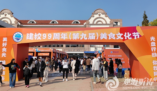 本站讯为庆祝中国海洋大学99周年华诞,丰富师生的校园饮食文化生活,持续打造“海大美食文化节”特色品牌,10月23日,由后勤党委、后勤保障处主办的中国海洋大学第九届美食文化节暨杜绝餐饮浪费宣传周活动在崂山校区开幕。党委常委、副校长王剑敏现场调研美食文化节工作,党委常委、副校长范其伟出席开幕式活动并现场检查安全生产等相关工作开展情况。王剑敏(右一)调研美食文化节“校友创新”摊位 第九届美食文化节主题为“美好‘食’光•‘味’你而来”“共庆母校生日•共享健康美食”,旨在通过举办一场热闹的美食文化节为学校庆生,为师生送上“海大味道”的金秋祝福。此次美食文化节在崂山校区设置主会场,各个食堂通过出摊的形式为师生打造为期两天的美食市集,颇具视觉冲击的烤乳猪、拍照打卡必备的学校元素亲亲海洋文创雪糕、视觉味觉双赞的熊猫斑斓椰……百余种特色小吃,食堂师傅们各展技艺,呈现一场风味美食的味蕾盛宴。范其伟(中)与校友代表、师生代表共同切开99周年校庆大蛋糕 文学与新闻传播学院李老师表示:“美食与文化的结合,不仅极大地丰富了师生的校园文化生活,而且为海大学子留下了深深的母校记忆,为美食文化节点赞!”2022级外