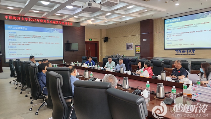 • 本站讯6月14日,中国海洋大学2023年研究生卓越奖学金评审会在崂山校区图书馆第一会议室召开,评审专家由校学术委员会和教学委员会研究生教学工作组成员担任,副校长、评审组组长刘勇出席会议。刘勇充分肯定了近年来研究生奖助体系改革的建设成效。他指出,研究生卓越奖学金为学校研究生最高奖励和荣誉,是学校拔尖创新人才培养体系的重要组成部分。此次评审会是展示研究生科研创新风采的重要平台,也是检验研究生培养质量的有效途径。他强调,要结合卓越研究生教育行动计划,进一步发挥研究生卓越奖学金的育人成效,深化研究生教育改革,全面提高人才自主培养质量。研究生院常务副院长陈朝晖主持会议。研究生培养办公室主任刘海波对学校研究生奖助体系,研究生卓越奖学金评选办法、评选标准、评选程序、历年获奖情况以及2023年候选人推荐情况等进行了详细介绍。近年来,学校深化实施研究生教育综合改革,依托研究生自主科研项目、优秀成果奖等,持续提升研究生科研创新能力;依托“中国海大研究生”微信公众号“研途伴你行”系列推送,展示优秀研究生风采,激励研究生勇攀学术高峰,学校研究生高水平成果不断涌现,学术创新水平显著提高。2023年研究生卓越奖学