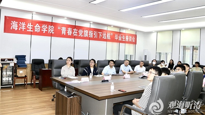 • 本站讯 盛夏的风拂过海大园斑驳的树影,又是一年骊歌起,又是一季离别时。6月15日下午,中国海洋大学海洋生命学院在化学举行“青春在党旗指引下远航”毕业生座谈会。中国工程院院士、学院名誉院长包振民,院长张玉忠,副院长董波,党委副书记、副院长张晓燕和一直陪伴在学子身边的毕业班辅导员们,为毕业生答疑解惑,洽谈人生经验,积蓄前进能量。  包振民院士一走进会议室,便亲切地询问大家的毕业去向,听到学生“考事业编”的回复后,幽默地说道“当官了啊”,立刻引起哄堂大笑。在轻松愉悦的开场里,座谈会正式开始。主题教育宣讲团成员、2020级本科生孙嘉翊以“百舸争流——科技之光绘出强国之梦”为主题讲述科技报国的故事,结合党的二十大报告的重要论述,娓娓道来国家生命仪器设备研发的奋进之路。  在菁菁学子寄母校环节,毕业生纷纷分享自己的求学求职经历、对人生规划的困惑和对母校、学院的感谢与建议,现场气氛轻松温馨。2020级生物工程硕士研究生李文雅分享了自己在担任学生党支部书记过程中得到的历练与成长,请教“刚入职场该从哪些方面提升自己和做好情绪排解”的难题。  包振民院士听后,以自己是别人口中的“那个老头”幽默开讲,回忆了