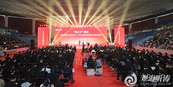 勇担使命跟党走,强国有我新征程。4月13日下午,“海之子”榜样中国海洋大学2021-2022学年优秀学生颁奖典礼在学校崂山校区综合体育馆隆重举行。海大师生及关心支持学校事业发展的各界代表欢聚一堂,立足新起点,奋进新征程,弘扬榜样精神,凝聚青春力量。 学校党委书记田辉,校长于志刚,党委副书记卢光志,副校长王剑敏、刘勇、范其伟、魏志强等出席典礼为优秀学生颁奖。 典礼分为“勤学篇”“笃行篇”“行远篇”三个篇章,颁奖典礼通过精心组织,隆重热烈表彰优秀,切实发挥榜样示范作用,激励和引导全体学生立足新时代、奋进新征程,以青春之我、奋斗之我争做堪当民族复兴重任的时代新人。田辉书记讲话 典礼上,田辉代表学校向受表彰的优秀学生集体和个人表示祝贺,向辛勤耕耘的广大教职员工表示敬意,向关心支持学校事业发展的社会各界朋友表示感谢。他指出,学校举行盛大的优秀学生颁奖典礼,是为了全面展示海大学子积极进取、昂扬向上的时代风采,树立挺膺担当、拼搏进取、奋发成才的示范和标杆,激励全体海大学子努力成长为堪当民族复兴重任的时代新人。 田辉强调,党的二十大报告首次把教育、科技、人才“三位一体”统筹安排、一体部署,