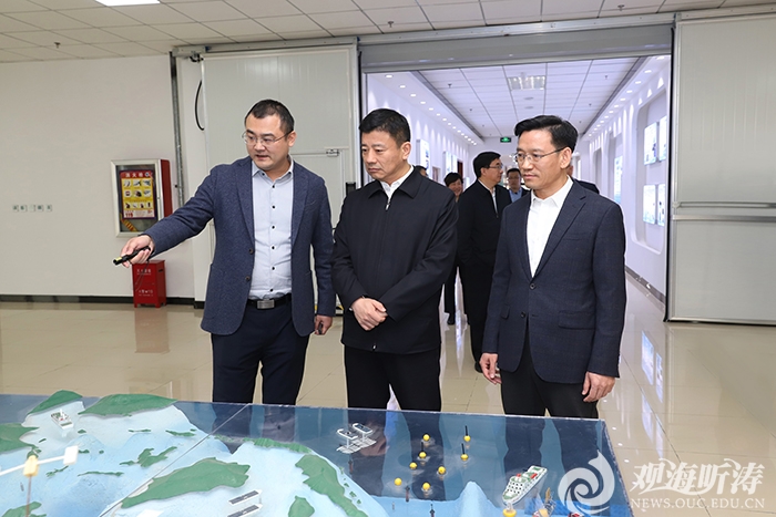 • 本站讯3月27日,山东省委教育工委常务副书记,省教育厅党组书记、厅长李明一行来到中国海洋大学调研。青岛市委教育工委常委副书记,市教育局党组书记、局长姜元韶,学校党委书记田辉、副校长刘勇陪同调研。李明一行实地查看了学校海洋高等研究院、山东省海洋工程重点实验室、王蒙文学馆等,对学校近年来改革发展取得的成绩以及在山东省高等教育高质量发展中发挥的重要示范作用给予充分肯定。李明指出,目前山东省正在深入实施教育提质行动,希望学校锚定“走在前、开新局”的目标定位,把党的领导融入办学治校全过程、各方面,全面落实立德树人根本任务,提升人才自主培养能力,充分发挥自身特色和优势,不断增强服务国家战略和山东经济社会发展能力,加快建设特色显著的世界一流大学,努力在全省高等教育高质量发展中当表率、做标杆,在国家海洋强国建设和新时代社会主义现代化强省建设中担重任、建新功。田辉代表学校对李明一行表示欢迎,对省教育厅长期以来给予学校的大力支持表示感谢。田辉表示,中国海大建校近100年来,始终走在国家科教战线的前列,培养造就了一大批海洋领域的领军人才,发挥了国家战略科技力量作用,为国家海洋事业和齐鲁发展作出了不可替代的历
