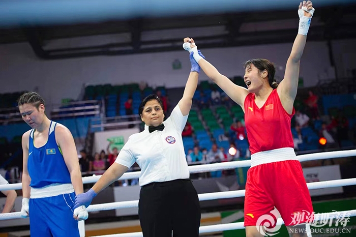 本站讯2023年世界女子拳击锦标赛于3月16日至26日在印度首都新德里举行。中国海洋大学拳击队学生队员,运动训练专业学生汪丽娜同学入选本次世锦赛国家队,代表中国女子拳击队在81公斤级别出战,本次比赛也是汪丽娜同学为夺取自己第二枚世锦赛金牌的一次征战。比赛中汪丽娜同学凭借自己娴熟的技术和丰富的经验,一路过关斩将,毫无悬念的杀入决赛。在25日决赛中力战东道主印度选手,最终在5名裁判员的分歧判决中,以微弱比分,憾居亚军。赛后汪丽娜同学表示自己会在2024年巴黎奥运会中再次冲击金牌,为国为校争光。据中国海洋大学拳击队总教练于联志教授介绍,世界女子拳击锦标赛是女子拳击最高级别的赛事,每两年举行一次。中国海洋大学拳击队成立于2008年,自海大拳击队学生队员入选国家队参加2010年世界女子拳击锦标赛以来,在历届世界女子拳击锦标赛中已为国家队贡献了6枚金牌,4枚银牌,为国家和海大挣得了荣誉。
