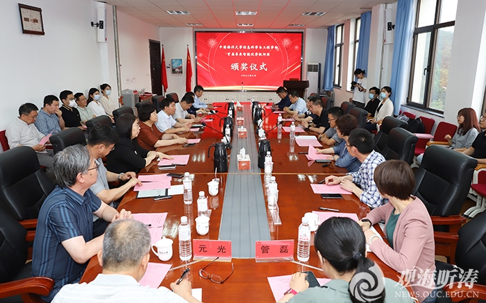 • 张静副书记(左一)和姜兆宁董事长(右一)为获奖教师颁奖王剑敏副校长(左一)和刘达平总裁(右一)为获奖教师颁奖本站讯6月16日下午,信息科学与工程学部首届易来智能优秀教师奖颁奖仪式在学部举行。青岛易来智能科技股份有限公司(以下简称“易来智能”)董事长姜兆宁、总裁刘达平,中国海洋大学党委常务副书记、校友会常务副会长张静,副校长、教育基金会理事长王剑敏出席仪式,并为获奖的5位教师和1个团队颁发获奖证书。张静代表学校向两位校友及校友企业易来智能在创业成功之时回馈母校表示敬意,对支持学校和学部的建设发展表示感谢,并向获奖的教师和团队表示祝贺。她表示,易来智能优秀教师奖的设立,彰显了优秀校友对学校人才培养工作的肯定、关注和支持。希望获奖教师能够秉持立德树人的教育初心,接力传递,奉献社会,在各自岗位上为把学生培养成为可堪大用,能担重任的栋梁之才而不懈努力。姜兆宁代表公司向获奖老师和团队表示祝贺。他表示,能够为母校的发展贡献力量是自己的心愿,不忘校恩,不忘师恩,易来智能将持续深入与学校合作,聚焦学校人才培养和科学研究,合力共创美好未来。王剑敏宣读了《关于表彰首届信息科学与工程学部易来智能优秀教师奖获奖