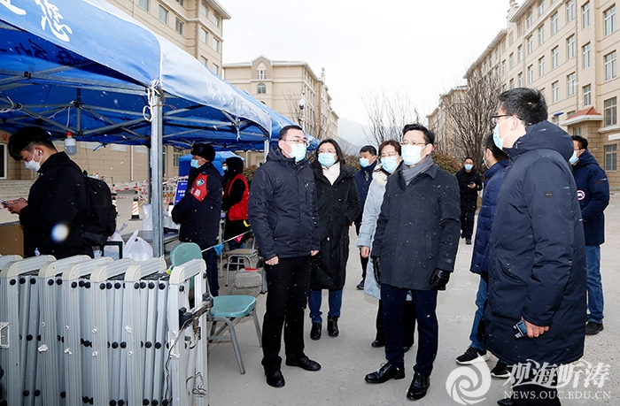 田辉书记(左二)带队在崂山校区看望慰问一线工作人员本站讯2月18日至2月20日,伴随着乍暖还寒的春风,中国海洋大学迎来了2022年春季学期返校学生。2月19日上午,学校党委书记田辉带队在崂山校区检查指导相关工作,看望返校学生、一线工作人员和志愿者,并深入学生宿舍与返校学生亲切交流。在返校核验点和核酸检测点,田辉听取了学生返校流程介绍。田辉强调,学生返校后14天内,是校园疫情防控的关键时期,在做好学生返校核验和核酸检测等工作的基础上,要高度重视并加强校内各项常态化防控举措,切实做好开学后教室、餐厅等人流密集封闭空间的防控管理,确保学校新学期各项工作的正常开展。田辉还向在寒风中坚守岗位的工作人员和志愿者表示慰问,叮嘱大家做好工作的同时注意个人防寒保暖。在北海苑和东海苑学生宿舍,田辉向学生了解了返校后生活情况,嘱咐他们做好房间通风、戴口罩、体温检测等个人防护措施,同学之间互相关心提醒,切实做好校园疫情防控工作。田辉书记(中)与返校学生交流党委常委、校长助理吴强明,党委办公室、校长办公室、学生工作处、保卫处、后勤保障处等部门负责人参加活动。根据上级要求,学校制定了统筹做好春季学期学生平稳有序返