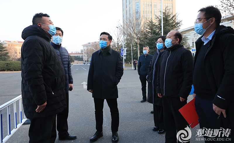 • 为切实加强学校假期安全管理工作,有效防范和坚决遏制各类安全事故的发生,在前期各单位安全自查、专项工作组专项检查基础上,1月19日,学校党委书记田辉、校长于志刚、党委常务副书记张静、总会计师王剑敏、党委副书记卢光志带队,在崂山校区、鱼山校区、浮山校区同时开展校园安全检查。走访检查过程中,学校领导分别来到学校总值班室、消防控制室、校医院、学生公寓、餐厅、有关学院实验室、项目建设现场等地了解安全工作落实情况,每到一处学校领导详细了解各单位疫情防控工作、安全隐患排查整改、师生员工安全教育、假期值班值守安排等,同时嘱咐学校相关单位要充分保障好留校师生学习生活,共同度过一个平安祥和的假期。图:赵海磊 赵奚赟 吴涛田辉书记、卢光志副书记在崂山校区西校门检查工作田辉书记、卢光志副书记在崂山校区学生宿舍项目建设现场检查工作于志刚校长、王剑敏总会计师在鱼山校区水产学院检查工作于志刚校长、王剑敏总会计师在鱼山校区校园餐厅检查工作张静常务副书记在浮山校区控股公司检查工作张静常务副书记在浮山校区学生公寓检查工作