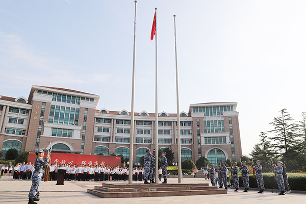 • 本站讯为庆祝新中国成立72周年,10月1日清晨,中国海洋大学举办“请党放心 强国有我”国庆升旗仪式暨主题团日活动。学校党委常委、校长助理吴强明出席活动。  一曲《我爱你,中国》唱出了对伟大祖国的衷心祝福,活动正式拉开序幕。校国旗中队的同学迈着整齐矫健的步伐护送鲜艳的五星红旗进场,伴随着雄壮激昂的《义勇军进行曲》,全体师生共同向国旗行注目礼,齐声高唱国歌,向祖国致敬。马克思主义学院青年教师刘乔讲授“请党放心,强国有我”主题团课,从百年党史中坚定团员青年在新时代奔赴伟大复兴的信念。学校五四青年奖获得者代表郭子昂同学分享成长故事,感悟使命担当。团员青年代表朗诵《强国有我 逐梦深蓝》,对党和祖国许下青春的誓言,深刻表达了海大青年青春向党、勇担使命、逐梦深蓝、强国有我的理想和斗志。  吴强明围绕三个字寄语青年学生:一是“学”,学党史要做到学有所思、学有所悟、学有所得,希望同学们真正做到学史明理、学史增信、学史崇德、学史力行,树牢为祖国为人民永久奋斗、赤诚奉献的坚定理想。二是“德”,在学校的培养下,在一代代中国海大人拼搏进取、奋斗报国的引领中,同学们要做到明大德、守公德、严私德。三是“勤”,在大学