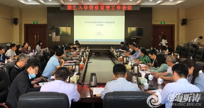 本站讯9月30日上午,中国海洋大学2020级新生入学资格复查工作会议在崂山校区图书馆第一会议室召开。副校长李巍然主持会议,副校长闫菊,党委常委、校长助理吴强明出席会议。 李巍然、闫菊就2020级新生入学资格复查工作做整体部署。李巍然强调,随着新形势、新问题的不断出现,新生入学资格审查工作要不断改进和完善,并建立长效审查机制。新生入学资格复查事关教育公平、学生合法权益和学校办学秩序,全体工作人员要高度重视、认真履职、严格把关,科学合理地做好资格复查工作,不断提升学校学籍管理水平。 会议就2020级新生入学资格复查工作进行了培训和研讨。教务处处长方奇志和党委研究生工作部秘书韩莹分别做了2020级本科生和研究生的入学资格复查工作培训。同时,与会人员就新生入学资格复查工作中可能遇到的各种情况和问题进行了认真的讨论,达成工作共识:提高政治站位,尽职尽责,全面贯彻落实教育部和山东省教育厅文件精神,确保资格复查工作切实有效。 学生工作处、教务处、研究生院、党委研究生工作部、继续教育学院、保卫处、网络与信息中心、本科生招生办公室、校医院主要负责人,各学院(中心)分管学生工作负责人、分管研究生工作