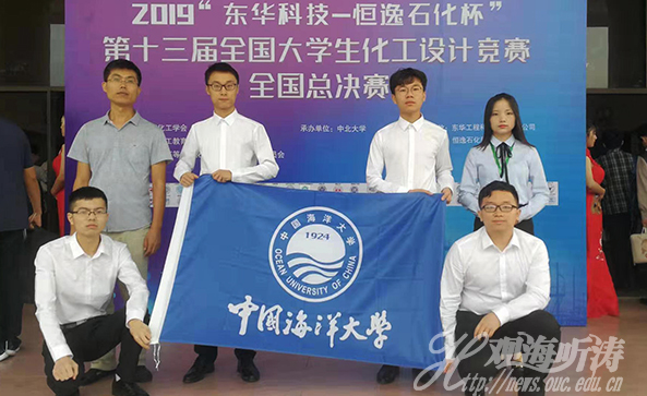 中国海洋大学代表队师生合影 本站讯8月20日至23日,2019“东华科技-恒逸石化杯”第十三届全国大学生化工设计竞赛全国总决赛在中北大学举行,化学化工学院2016级化学工程与工艺本科生王彦旭、贾继龙、江明琴、蒋智霖、何思远组成的中国海洋大学代表队“海纳百川”团队荣获全国一等奖。 全国大学生化工设计竞赛是由中国化工学会、中国化工教育协会、教育部高等学校化工类专业教学指导委员会在东华工程科技股份有限公司和恒逸石化股份有限公司的冠名赞助下举办的,旨在多方面培养大学生的创新思维和工程技能,培养团队协作精神,增强大学生的工程设计与实践能力,实践“卓越工程师教育培养计划”。 竞赛分为赛区比赛和全国总决赛。在七大赛区比赛中,共有357所高校化工专业学生组成的2196支队伍参与其中。化学化工学院化学工程系伍联营、李春虎、胡仰栋、安维中和林子昕老师作为指导教师,指导团队参加8月份的全国大学生化工设计竞赛华北赛区比赛,最终荣获特等奖,晋级全国总决赛。 总决赛由中北大学承办,共有60支队伍参赛。比赛中,中国海洋大学代表队五位选手通力协作、默契配合,展现出了扎实的化工理论水平和优秀的化工设计能力。通过