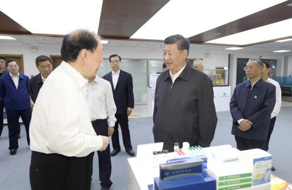 本站讯在出席上海合作组织青岛峰会后,习近平总书记开始在山东考察。6月12日上午,习近平总书记来到青岛海洋科学与技术试点国家实验室,了解实验室研究重大前沿科学问题、系统布局和自主研发海洋高端装备等情况。中国工程院院士管华诗向习近平总书记介绍海洋药物研发情况 考察过程中,习近平总书记说,建设海洋强国,我一直有这样一个信念。发展海洋经济、海洋科研是推动我们强国战略很重要的一个方面,一定要抓好。关键的技术要靠我们自主来研发,海洋经济的发展前途无量。他勉励大家,再接再厉,创造辉煌,为祖国为民族立新功。 中国科学院院士、中国海洋大学副校长、青岛海洋科学与技术国家实验室主任吴立新 向习近平总书记介绍相关情况 考察过程中,习近平总书记听取了中国工程院院士管华诗关于海洋药物研发情况的介绍。习近平指出,海洋经济、海洋科技将来是一个重要主攻方向,从陆域到海域都有我们未知的领域,有很大的潜力。管华诗说,自己的梦想就是打造中国的“蓝色药库”。总书记表示:“这是我们共同的梦想!”中国海洋大学校长于志刚(右三)陪同考察 6月13日,国内各大媒体高度关注习近平总书记考察海洋国家实验室时的重要指示精神,以《习