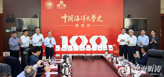 学校百年华诞前夕,10月10日,《中国海洋大学史》首发式在崂山校区图书馆举行。学校党委副书记卢光志,校史编委会代表、原党委书记冯瑞龙,党委常委、党委组织部部长、党委宣传部部长、新闻中心主任蒋秋飚,党委常委、党委统战部部长陈鷟,《中国海洋大学史》编委会副主任魏世江,中国高等教育学会大学文化分会常务理事、校史研究专家、天津大学教授王傑,以及青岛市委宣传部、青岛市图书馆、青岛市档案馆相关代表出席。《中国海洋大学史》由中国海洋大学出版社出版,分《历史卷》《人物卷》《规章卷》《成果卷》《图志卷》《现象卷》和《纪事》,共7卷10册,近500万字,从办学各时期、办学经验、建章立制、人才培养、学科发展、学术成就、服务国家等各个方面全面、形象地反映了学校一百年来的办学全貌。学校于2017年启动百年校史编撰工作。在学校党委领导下,七易寒暑,七卷编撰,数十名参编人员、十余名责编人员辛勤付出,将学校百年办学风雨历程第一次全面、立体呈现。首发式上,卢光志代表学校向《中国海洋大学史》编写团队、出版团队和长期关心支持学校发展的各级领导与各界朋友表示感谢。他指出,《中国海洋大学史》新书发布,不仅是学校长期重视和
