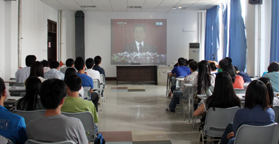 海大各级团组织收听收看纪念共青团成立90周年大会直播
