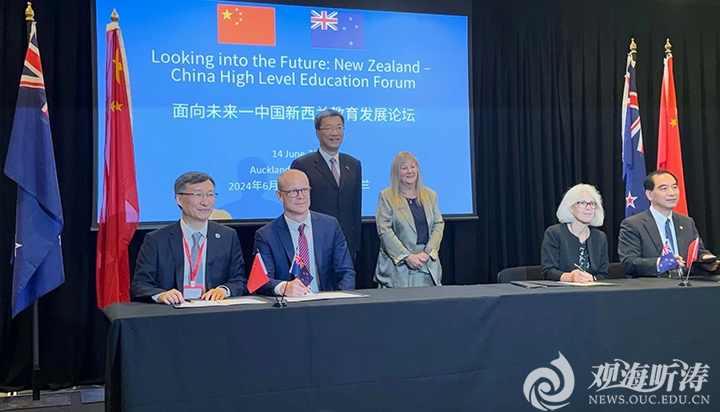 • 本站讯6月14日,中国海洋大学校长张峻峰应邀赴新西兰参加在奥克兰举办的“面向未来一中新教育发展论坛”,在论坛圆桌讨论上作主题发言并与合作院校签署合作备忘录。  论坛由中国教育部与新西兰教育部联合举办。国务院总理李强同新西兰总理拉克森共同出席论坛闭幕式并致辞。中国教育部部长怀进鹏同新西兰高等教育和技能部部长佩妮•西蒙兹共同主持圆桌讨论。中国海洋大学与北京大学等11所中方高校,奥克兰大学、惠灵顿维多利亚大学、怀卡托大学等8所新方高校参与讨论,就学生学者双向交流及高层次人才培养、高水平联合科研、高等教育在发展创新型经济和提高生产力中的作用、数字教育赋能合作四个议题进行深入交流。张峻峰校长发表主题演讲在论坛圆桌讨论中,张峻峰就高水平联合科研作主题发言。他表示,中国海洋大学已与多所新西兰院校建立友好合作关系,围绕海洋科学、海洋药物、海洋食品、计算机等多个领域开展学术交流和合作研究,联合发表了一批有影响力的学术成果,并开展创新型人才国际合作培养项目,组织学生赴新西兰实习实训等均取得良好成果。下一步,学校将与惠灵顿维多利亚大学聚焦海洋药物、智慧水产科技等领域深化科研合作,将与怀卡托大学聚焦极地研究推