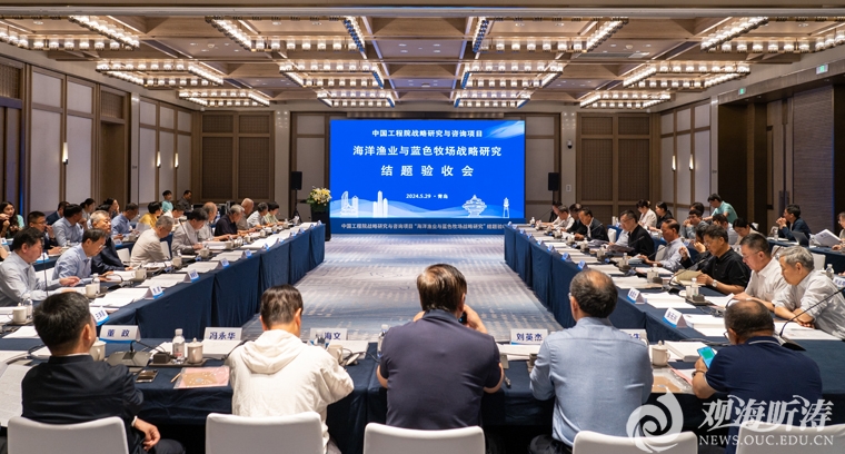 • 本站讯5月29日,由中国海洋大学麦康森院士主持的中国工程院战略研究与咨询项目“海洋渔业与蓝色牧场战略研究”项目验收会在青岛召开。验收组专家、中国工程院院士邓秀新、刘旭、张守攻、陈温福、金宁一、凌文、康振生、刘少军、姚斌,项目组主要成员、中国工程院院士麦康森、包振民、陈松林、王军成、笪良龙、薛长湖参加会议。中国海洋大学校长张峻峰出席会议并致辞。会议由中国工程院一局局长罗莎莎主持。张峻峰代表学校向参会领导和专家表示感谢。他指出,项目组提出了我国海洋渔业资源利用与蓝色牧场建设的战略目标,以及海洋经济和海洋国土安全的顶层设计和全产业链创新的政策建议,在引领学术发展、支撑国家重大战略决策方面具有重要的指导意义。他表示,中国海洋大学始终以全方位服务国家海洋事业为己任,以造就国家海洋事业的领军人才和骨干力量为使命,学校将持续加强有组织科研,为战略科学家做好全方位保障,力争产出更多原创性、引领性成果,为服务海洋强国建设作出更大贡献。项目负责人麦康森及各课题负责人汇报了项目的战略研究成果。麦康森指出,建设海洋渔业和蓝色牧场是落实习近平总书记大食物观、构建多元化食物供给体系的重要举措,是我国海洋强国建设的