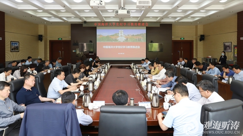 • 本站讯 5月29日,中国海洋大学召开党纪学习教育推进会。教育部直属高校党建工作联络员郑其绪、学校党政领导张峻峰、张静、杨茂椿、范其伟出席会议。党委书记田辉出席会议并讲话,党委常务副书记张静主持会议。会上,田辉带领与会同志共同学习了习近平总书记在山东考察时关于党纪学习教育的重要讲话精神,传达了教育部党组书记、部长怀进鹏就直属高校抓好党纪学习教育作出的批示,总结了学校党纪学习教育取得的工作进展和阶段性成效,对下一步扎实落实各项重点任务,推动党纪学习教育走深走实提出要求。田辉强调,习近平总书记在山东考察时关于党纪学习教育的重要讲话,为我们进一步开展好党纪学习教育指明了方向,全校各级党组织和党员干部要认真学习领会、深入贯彻落实。怀进鹏部长对直属高校如何推动党纪学习教育走深走实提出了明确要求,要立足学校实际抓好贯彻落实。田辉指出,党纪学习教育启动以来,学校党委认真落实党中央部署和教育部党组要求,坚持提高政治站位,精心谋划务求实效学,坚持精读细研,领导干部示范引领学,坚持分类指导,师生党员全面覆盖学,坚持统筹推进,联系实际促进发展学,学校党纪学习教育实现了高起点开局、高质量推进,取得了良好成效。田