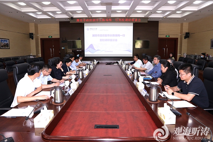 • 本站讯6月3日,潍坊市人民政府副市长陈端梅一行来校调研,双方围绕人才培养、平台共建、科研合作等方面座谈交流。副校长范其伟陪同调研并参加座谈会。座谈会上,范其伟代表学校对陈端梅一行的来访表示欢迎,对潍坊市给予学校事业发展的支持表示感谢,并简要介绍了学校的发展情况。他讲到,中国海洋大学和潍坊市有着良好的合作基础,期待双方在人才培养、科研合作、成果转化、产业规划等多个领域展开更深层次的合作,建立校地合作发展新模式,打造校地合作新样板,共同为国家海洋强国建设、山东海洋强省建设作出更大贡献。陈端梅向中国海洋大学长期以来对潍坊经济社会发展的支持表示感谢。她表示,中国海洋大学是一所海洋和水产学科特色显著、学科门类齐全的知名学府,学科优势明显、创新资源丰富、科研实力雄厚。近年来与潍坊市在人才培养、平台建设、科技研发等方面保持密切合作、取得了丰硕成果,为全市发展提供了有力人才支撑和强大智力支持。期待双方进一步加强交流对接,聚焦海洋经济、科技人才、生态环保等领域,持续深化人才培养交流、学科专业建设,加强产学研合作、科技成果转化,共同推进校地合作再上新台阶。潍坊市教育局、市海渔局和学校国内合作工作办公室、继