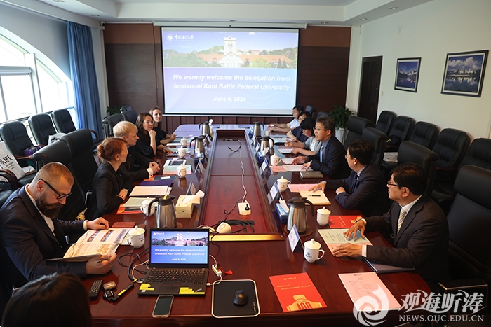 • 本站讯 6月6日,康德波罗的海联邦大学校长亚历山大·费多罗夫一行来校访问,副校长范其伟在崂山校区会见了来访客人。范其伟对亚历山大·费多罗夫一行来访表示欢迎。他介绍了学校基本情况和特色优势,简要回顾了学校与俄院校交流合作情况。他对与康德波罗的海大学建立校际友好关系,发挥各自优势强强合作,开展在海洋、极地、语言、教育、体育文化与运动等领域务实合作表示期待。亚历山大·费多罗夫对中国海洋大学的热情接待表示感谢。他介绍了康德波罗的海联邦大学基本情况,并表示两校在学科领域上有共通之处,希望以此次访问为契机,推动两校建立合作伙伴关系,在学术交流、学生联合培养等方面开展合作。会谈期间,双方签署了合作谅解备忘录,与会代表就各自的研究领域和合作方式进行了交流讨论,达成了初步合作意向。签署合作备忘录学校国际合作与交流处、海洋与大气学院、海洋生命学院、基础教学中心等单位代表参加会见。通讯员:万倩 图:赵海磊合影