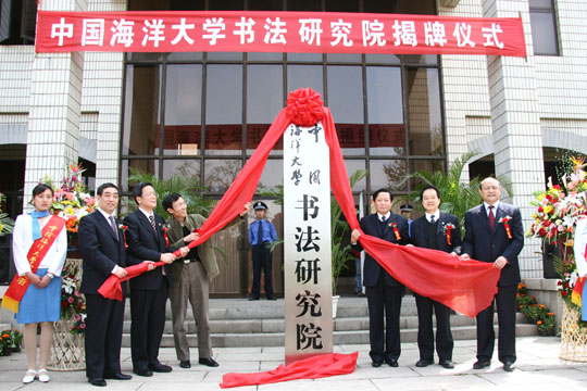 有关领导为我校书法研究院揭牌 本站讯 4月28日上午,我校书法研究院揭牌仪式在逸夫科技馆楼前
