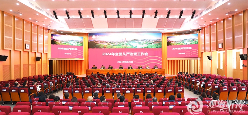 • 3月26日上午,中国海洋大学召开2024年全面从严治党工作会议,深入学习贯彻习近平总书记关于党的自我革命的重要思想,学习贯彻二十届中央纪委三次全会、2024年教育系统全面从严治党工作视频会议、十二届山东省纪委三次全会精神,总结学校第十一次党代会以来全面从严治党工作,部署今年的重点任务,并开展警示教育。学校党委书记田辉,党委副书记、校长张峻峰,党委常务副书记张静,党委副书记卢光志,党委副书记、纪委书记杨茂椿,副校长刘勇、范其伟、魏志强出席会议。田辉在讲话中强调,习近平总书记在二十届中央纪委三次全会上深刻总结新时代全面从严治党丰富实践经验和重要理论成果,深刻阐述党的自我革命的重要思想,科学回答关于党的自我革命的三个重大问题,明确提出推进自我革命“九个以”的实践要求,为新时代新征程深入推进全面从严治党、党风廉政建设和反腐败斗争提供了根本遵循。学校各级党组织和广大党员干部要深入学习领会,认真抓好贯彻落实。要深学细悟我们党“为什么要自我革命”,增强推进全面从严治党的坚定自觉;要深学细悟我们党“为什么能自我革命”,增强推进全面从严治党的信心决心;要深学细悟我们党“怎样推进自我革命”,增强推进