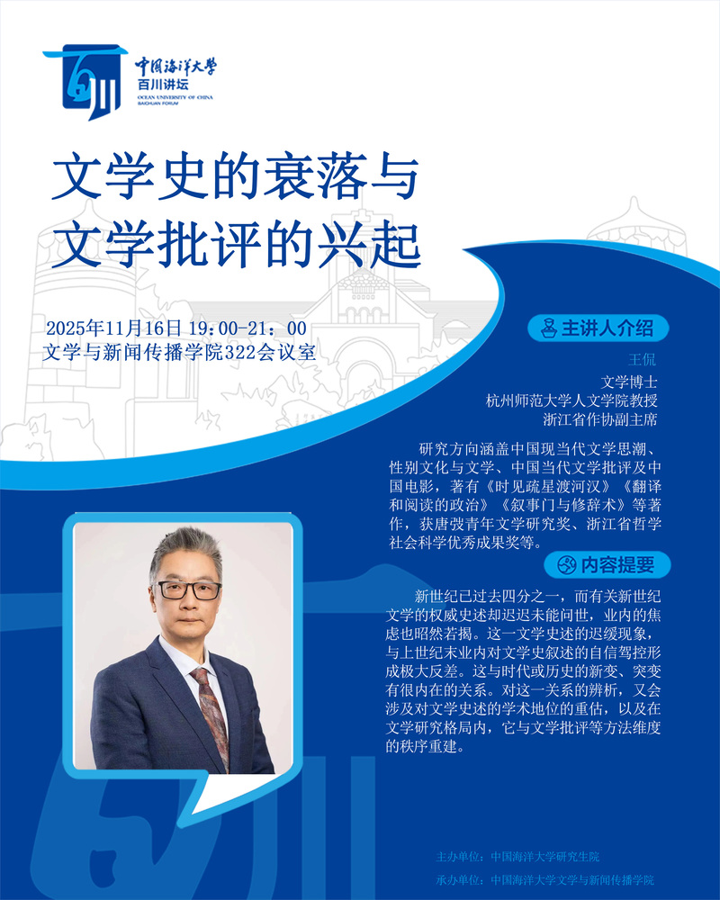 研究生百川讲坛第563讲-王侃:文学史的衰落与文学批评的兴起